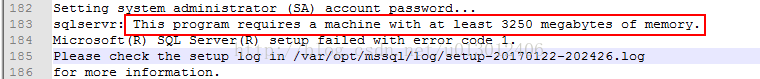 微软官方提示,在Linux上安装SQL Server需要至少3.25GB的内存,否则会配置失败。