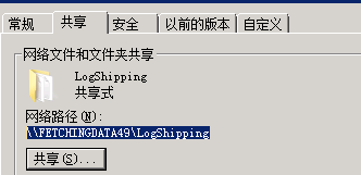 在辅助服务器上建立共享目录C:\LogShipping\secondary 具有作业访问权限