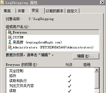 在主服务器上建立共享目录C:\LogShipping\primary 具有作业访问权限