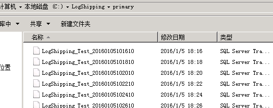 将以前备份和复制所在文件夹的数据删除掉(D:\LogShipping\primary,D:\LogShipping\secondary )