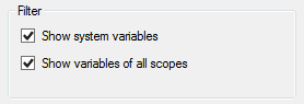 打开Event Handlers Tab,在Variables 窗体中,点击网格选项(Grid Options)按钮,打开Variable Grid Options 窗体,在Filter选项中勾选"Show system variables",点击“OK”,返回到Variables窗体: