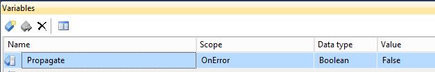 在 Variables 窗体中,找到 Propagate 系统变量(Scope是OnError),把Value设置为False