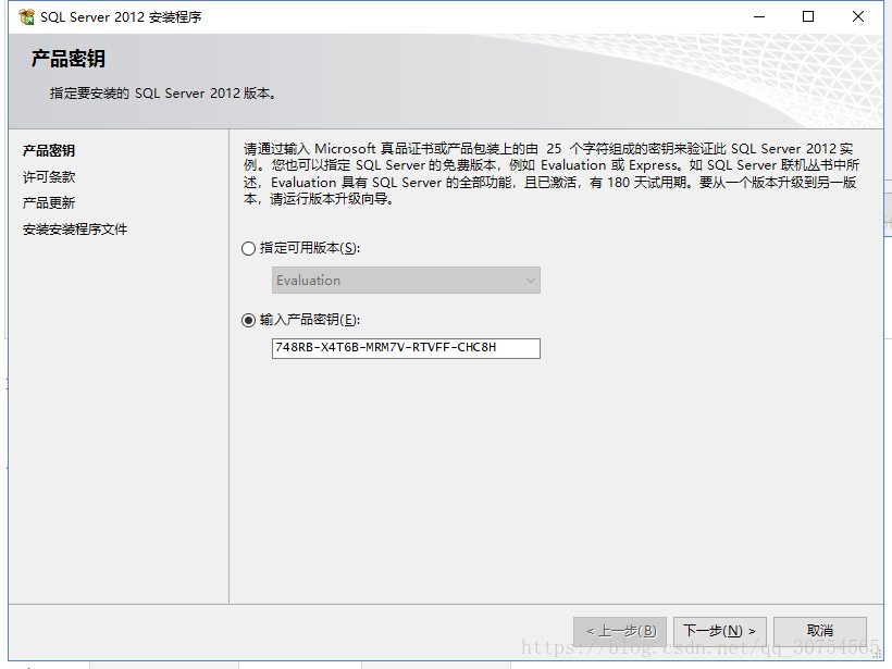 正版自带产品密钥,不需要再去网上找了,直接点击下一步