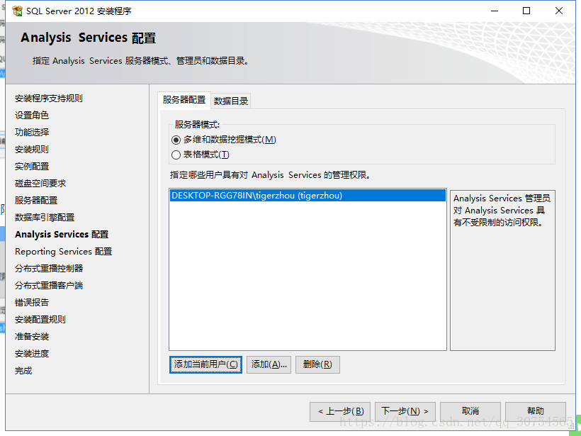 继续添加当前用户,然后在数据目录里面可以改变位置,不要放c盘,继续下一步