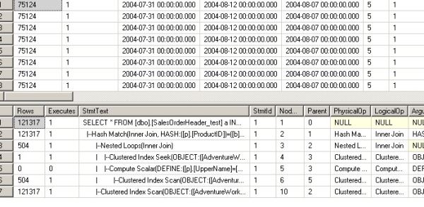 --测试一: USE [AdventureWorks] GO DBCC freeproccache GO EXEC [dbo].[Sniff] @i = 500000 -- int --发生编译,插入一个使用nested loops联接的执行计划 GO EXEC [dbo].[Sniff] @i = 75124 -- int --发生执行计划重用,重用上面的nested loops的执行计划 GO