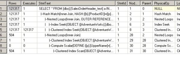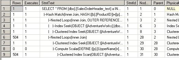 --第一次 USE [AdventureWorks] GO DBCC freeproccache GO SET STATISTICS TIME ON SET STATISTICS PROFILE ON EXEC [dbo].[Sniff] @i = 50000 -- int GO