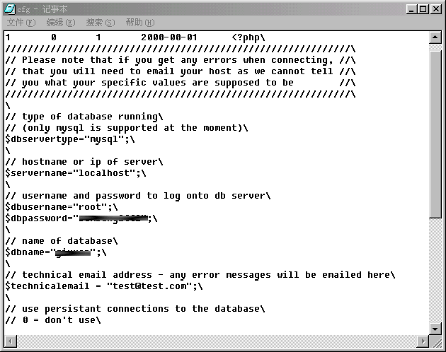 内容哗啦啦的出来了,而黑夜和猪蛋的他们入侵灰色的时候,一个个显示密码,欺骗,登陆后台,上传后门,读取config.php,一连串的步骤,我一个load_file()就搞定了。是不是危害很大?如图: