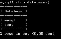 刚开始时才两个数据库:mysql和test。mysql库很重要它里面有MYSQL的系统信息,我们改密码和新增用户,实际上就是用这个库进行操作。