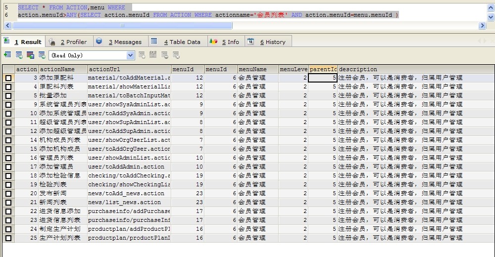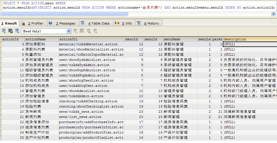 由于时间因素,具体区别我就不做文字上的解释,我把运行结果截图给大家看看,通过思考这个问题,我顿时也明白了之前exist语句的一些困惑,大家有空也揣摩一下。