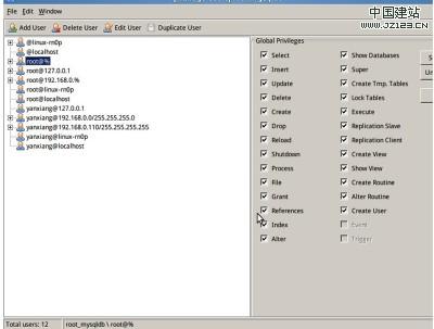 如果Host设为:192.168.0.%表明用户root可以从192.168.0.0子网内的主机登录。