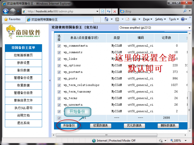 在这里我们推荐使用“帝国备份王”对MySQL进行备份。