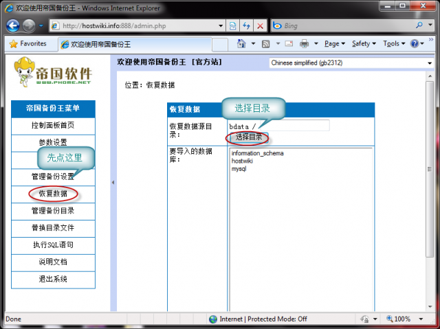 如果是在其他机器上恢复,需要将“帝国备份王”的程序以及bdata目录下存放备份数据的目录一起上传至新的机器上。