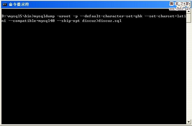 mysqldump -uroot -p --default-character-set=gbk --set-charset=latin1 --compatible=mysql40 --skip-opt discuz>discuz.sql