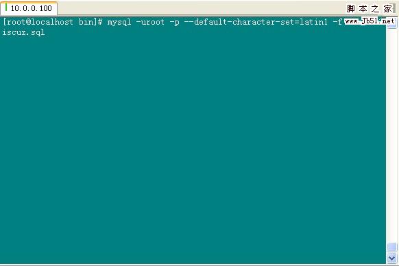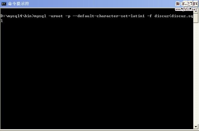 mysql -uroot -p --default-character-set=latin1 -f discuz<discuz.sql