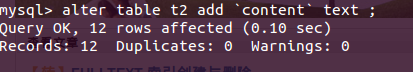 >> 为content字段添加全文索引