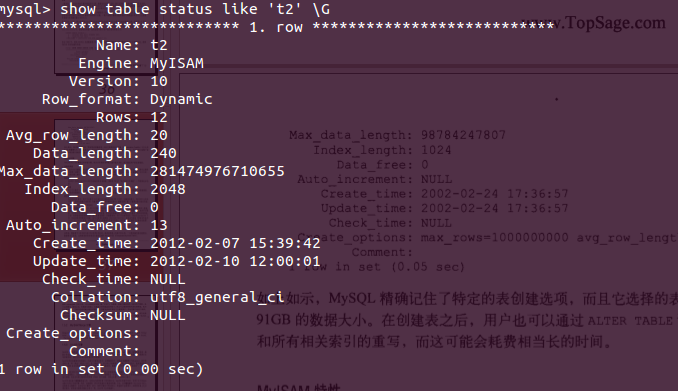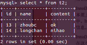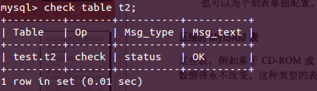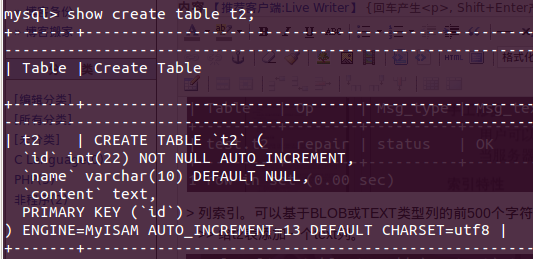 >> 表记录:t2表的engine是myisam。