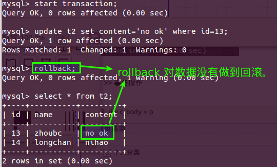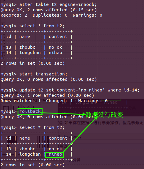 注意:如果你在数据库进行事务操作,但是事务无法成功,你就要看你的表引擎了,看这种引擎是否支持事务。