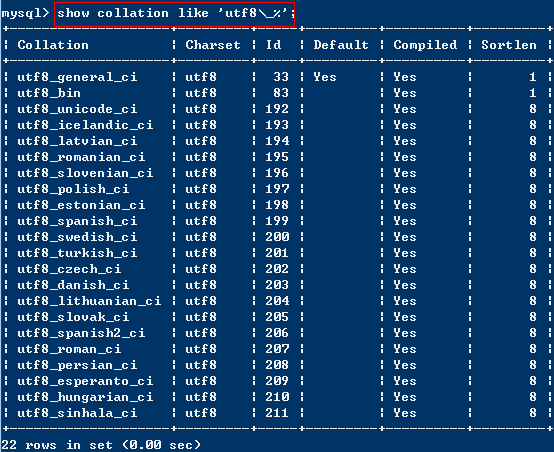 通过show collation like ‘utf8\_%'