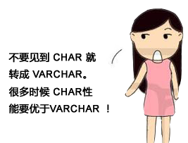 1>> 对于经常改变的值,char优于varchar,因为固定长度行不容易产生碎片。——当最长长度远大于平均长度,并且很少发生更新的时候,通常适合使用varchar。