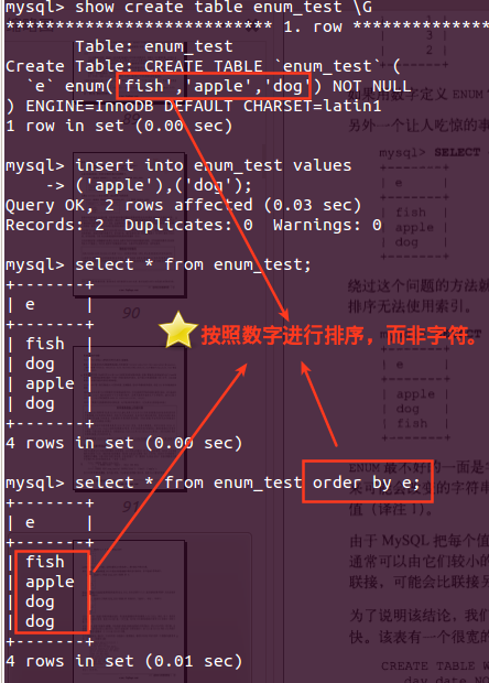 在对enum列使用order by的时候,是按数字排序的,而不是字符串排序。
