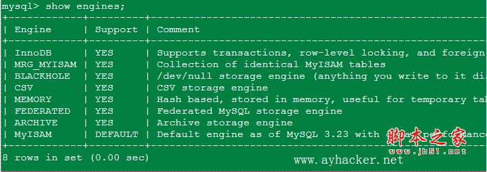 使用show engines 命令查看数据库是否已支持FEDERATED引擎: