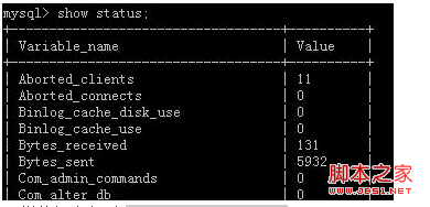 直接在命令行下登陆MySQL运行SHOW STATUS;查询语句,详细如下图