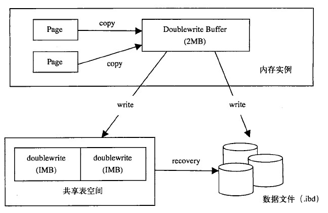 两次写: 它带来InnoDB数据的可靠性。如果写失效,可以通过重做日志进行恢复,但是重做日志中记录的是对页的物理操作,如果页本身损坏,再对其进行重做是没有意义的。所以,在应用重做日志前,需要一个页的副本,当写入失效发生时,先通过页的副本来还原该页,再进行重做,这就是doublewire。