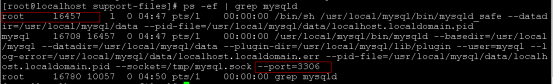 从里面可以看出mysql为root用户启动,还可以看到安装目录以及端口号等。