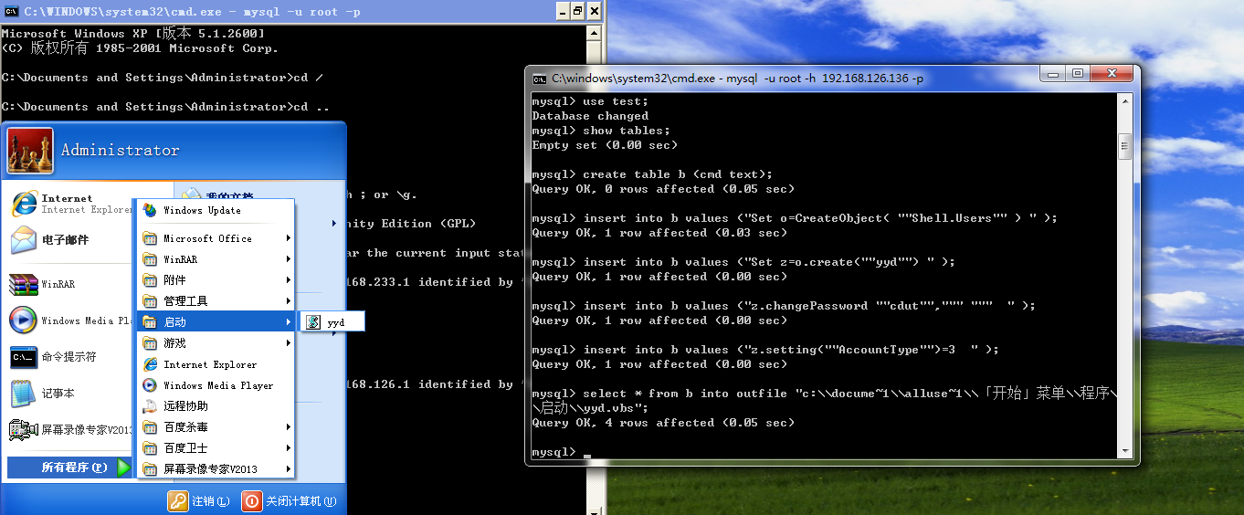 感觉有点乱,主要是分享了两种方法入侵,但是防范那部分应该是XP上的MySql服务关闭,但是早XP上做了好多测试,左后XP被我弄挂掉了。。。。好丢脸,只好把Win7上的MySql服务拿出来了。