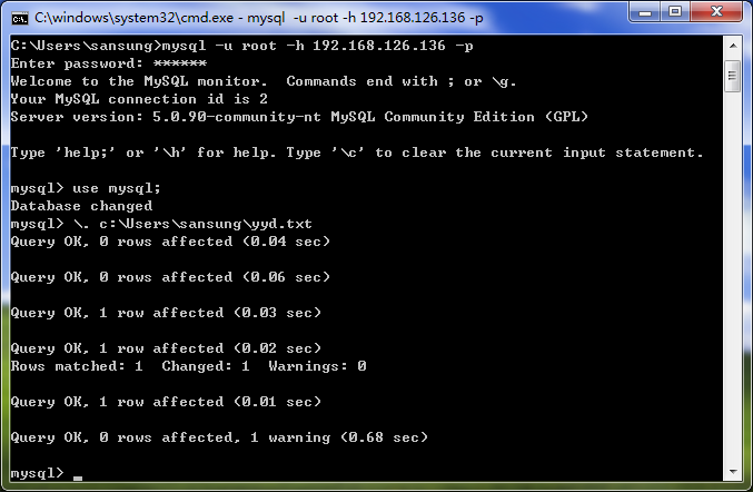 远程登录之后写入代码,代码在yyd.txt当中,然后在MySql中写入文件: