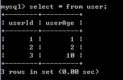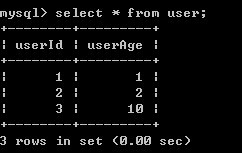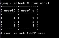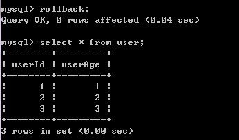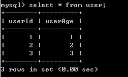 3)A再对user表进行查询,发现记录没有受到影响