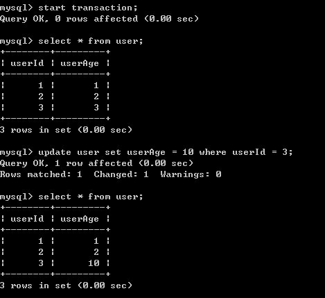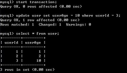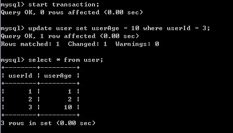 7)A重新开始事务,并对user表进行修改