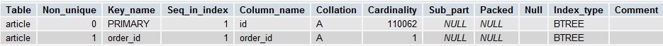 mysql>ALTER TABLE `article` ADD INDEX (`id`,`order_id`);给article表增加id索引,order_id索引