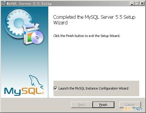 将“Launch the Mysql Instance Configuration Wizard(启用MySQL配置向导)”前面的勾打上,然后按 “Finish” 完成安装。