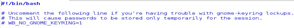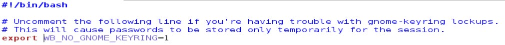 将# WB_NO_GNOME_KEYRING=1改成export WB_NO_GNOME_KEYRING=1,