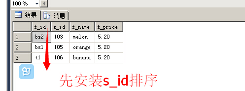 第一个查询把f_price小于9.0的记录查询出来,第二个查询把s_id为101和103的记录查询处理