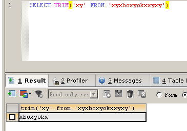 SELECT TRIM('xy' FROM 'xyxboxyokxxyxy')
