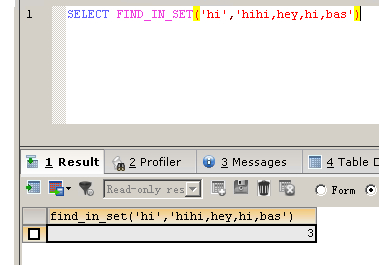 SELECT FIND_IN_SET('hi','hihi,hey,hi,bas')