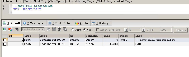 函数使用说明: BENCHMARK() 函数重复 count 次执行表达式 expr 。 它可以被用于计算 MySQL 处理表达式的速度。结果值通常为 0 。另一种用处来自 mysql 客户端内部 , 能够报告问询执行的次数