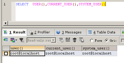 函数使用说明:返回当前话路被验证的用户名和主机名组合。这个值符合确定你的存取权限的 MySQL 账户。在被指定 SQL SECURITY DEFINER 特征的存储程序内, CURRENT_USER() 返回程序的创