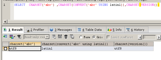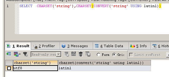函数使用说明:返回字符串自变量的字符集。