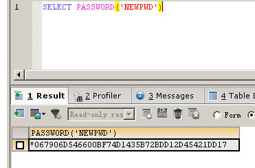 函数使用说明:从原文密码str 计算并返回密码字符串,当参数为 NULL 时返回 NULL 。这个函数用于用户授权表的Password 列中的加密MySQL 密码存储