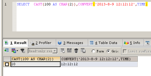INSERT(S1,X,LEN,S2)函数跟SQLSERVER里的STUFF()函数的功能是一样的,这里不作介绍了