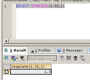 SELECT TRUNCATE(1.32,1)