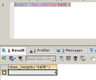 SELECT CHAR_LENGTH('DATE')