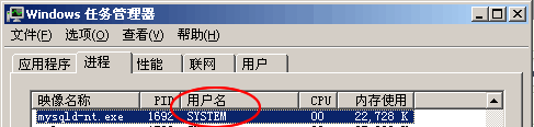 启动后注意看任务管理器里面mysqld-nt.exe的运行帐户是否变为sqlserver。