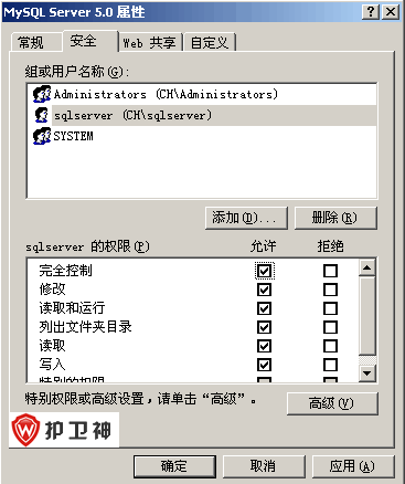 第二步:设置该GUEST帐户有MYSQL安装目录的控制权限。