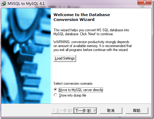 默认就是Move to MysQL server directly,选择下一步
