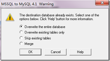 点下一步,如果mysql里面有同名的数据库,会让你来选择转换的方式,分别是