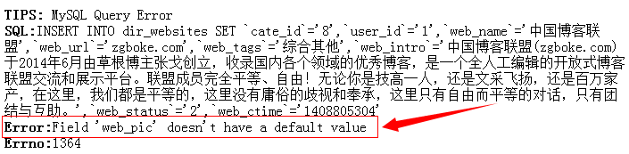 提示web_pic不能为空值。很纳闷,之前都可以成功提交的,为什么突然不行了?看了下网上的案例,说是需要修改MySQL的配置什么的,但是目前博客联盟是挂在京东云擎的,数据库不能修改配置,按理说之前可以正常提交,后面应该也可以才对啊!